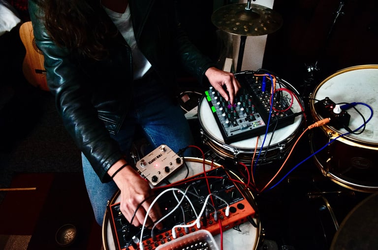 Instruments & Gear: upright piano, MIDI keyboard, electric Roland drum kit, acoustic professional drum kit (Pearl limited edition), Camera, lightings, Rode microphone.